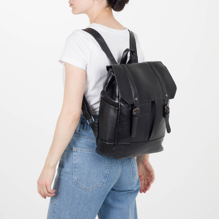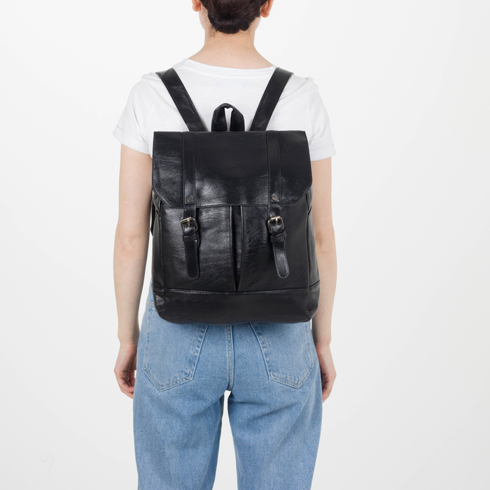 Рюкзак молодёжный, отдел на молнии, 4 наружных кармана, цвет чёрный