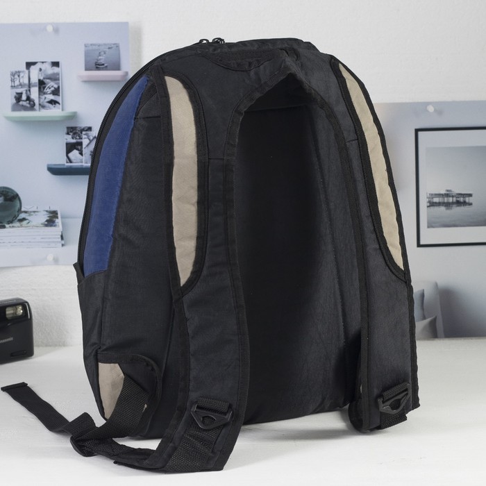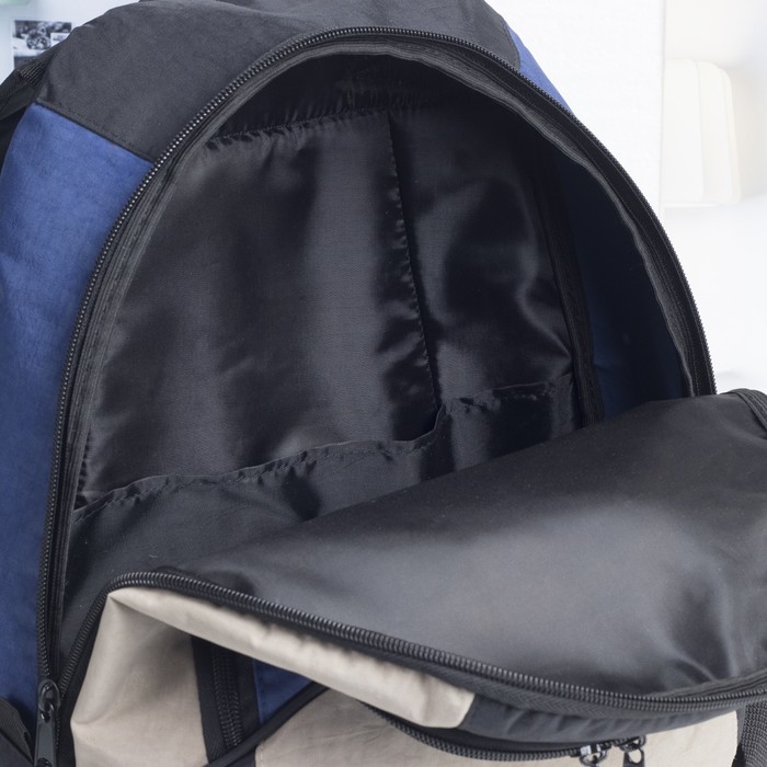 Рюкзак на молнии, 2 отдела, наружный карман, цвет бежевый/синий