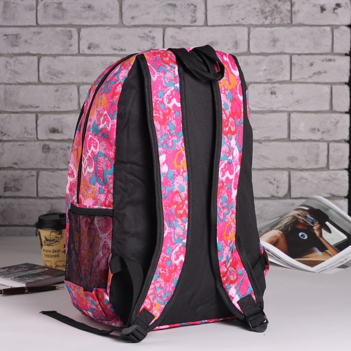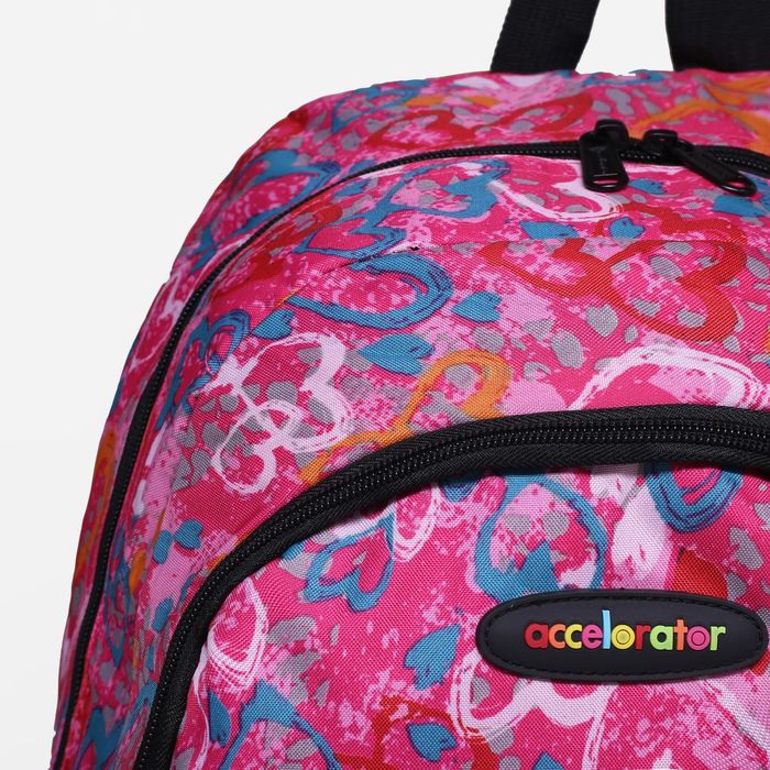 Рюкзак подр Сердца 32*18*45 отдел на молнии 2 нар кармана 2 бок сетки малиновый