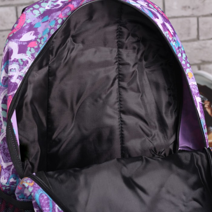 Рюкзак подр Сердца 32*18*45 отдел на молнии 2 нар кармана 2 бок сетки сиреневый