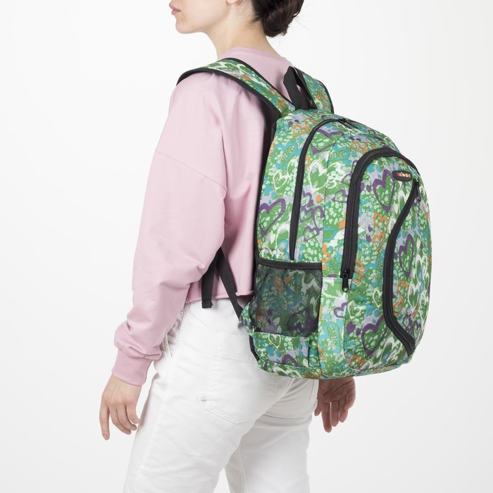 Рюкзак подр Сердца 32*18*45 отдел на молнии 2 нар кармана 2 бок сетки зелёный