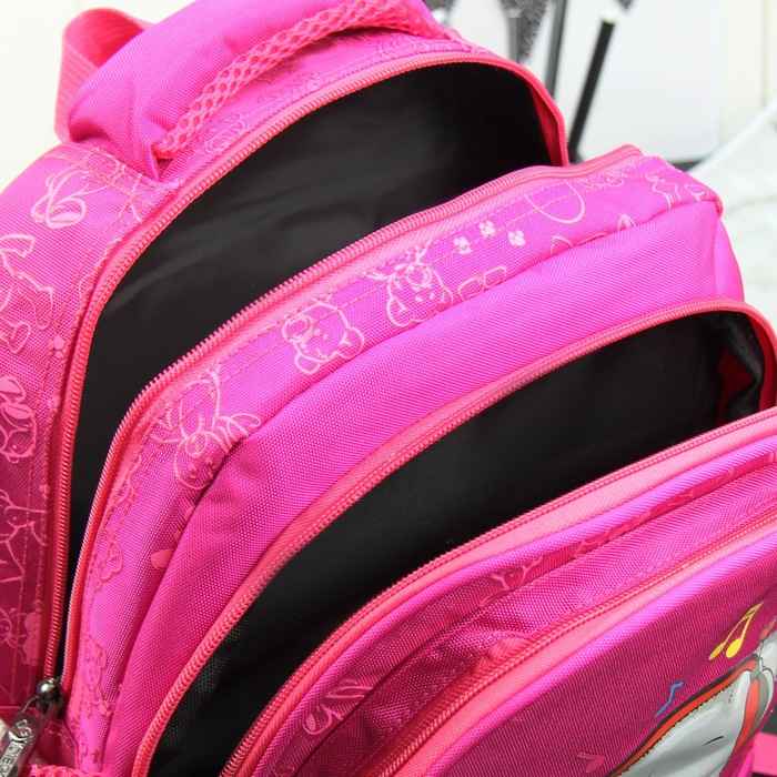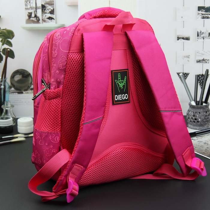 Рюкзак школьный "Мишка", 2 отдела на молнии, наружный карман, 2 боковые сетки, усиленная спинка, цвет малиновый