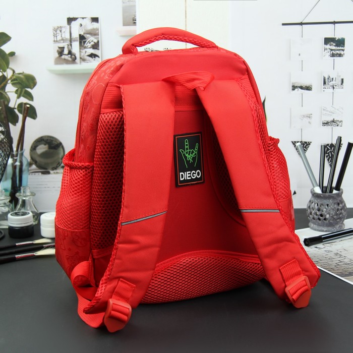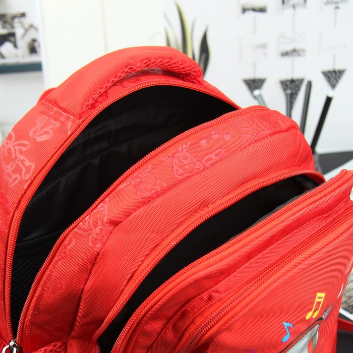 Рюкзак школьный "Мишка", 3 отдела на молнии, 2 боковые сетки, усиленная спинка, цвет красный
