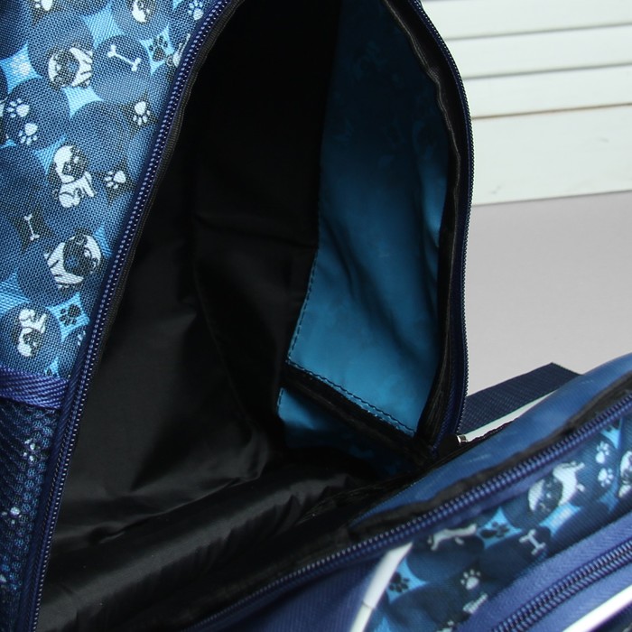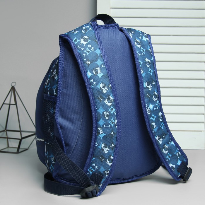 Рюкзак школьный «Мопсы», отдел на молнии, наружный карман, цвет синий