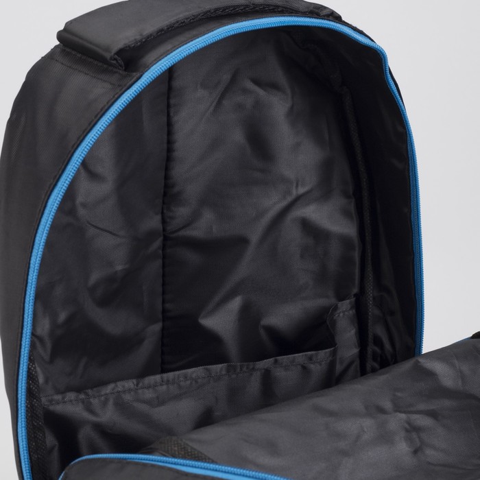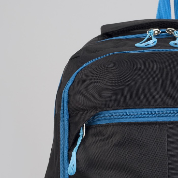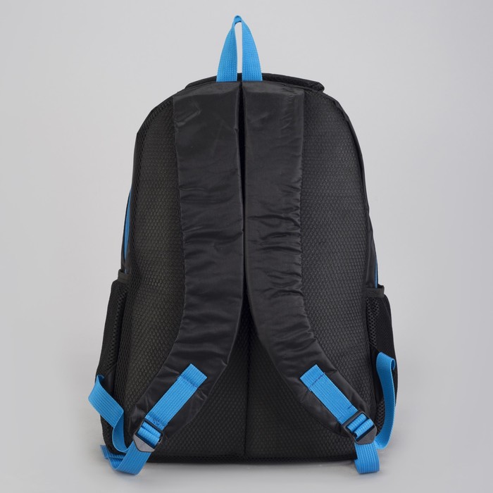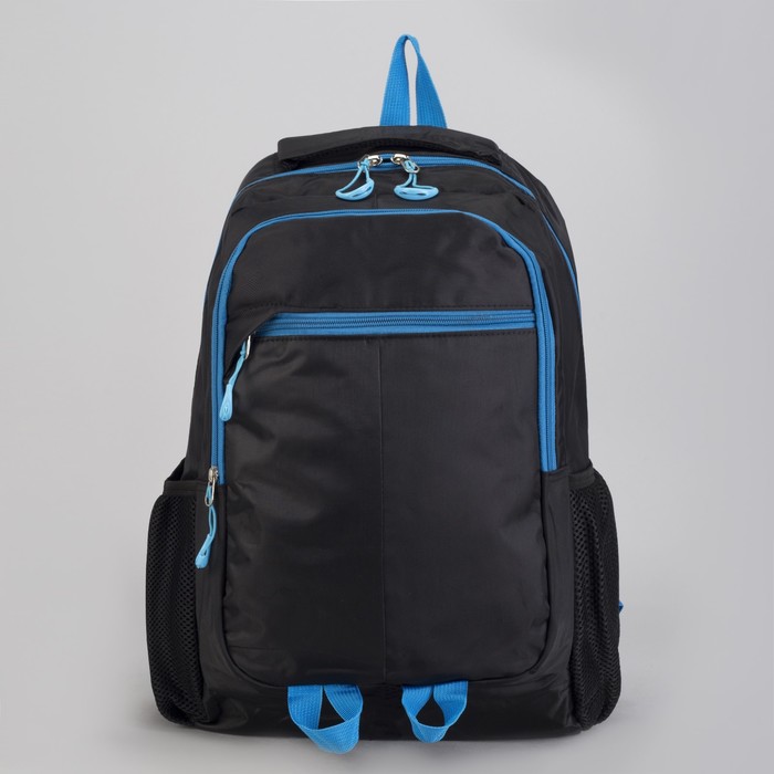 Рюкзак туристический, 2 отдела на молниях, наружный карман, 2 боковые сетки, усиленная спинка, цвет чёрный/синий