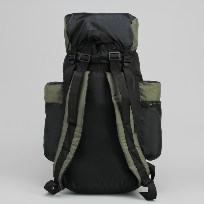 Рюкзак туристический "Рейд", 65 л, отдел на шнурке, 3 наружных кармана, кордура, цвет чёрный/зелёный