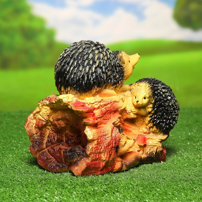 Садовая фигура "Ежи на пне" 23х20х29см создаст солнечное настроение даже в пасмурный день и сделает дачный участок оригинальным. Дополните окружающее пространство необычной деталью.