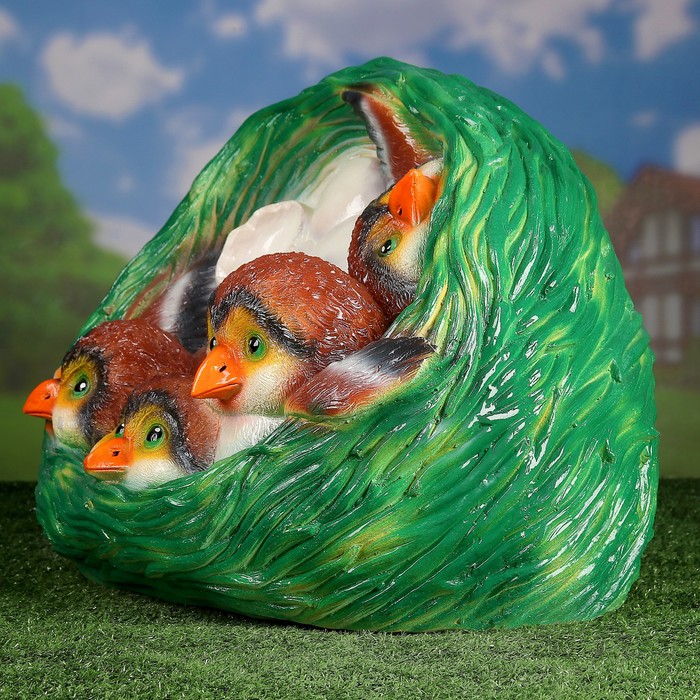Садовая фигура "Гнездо", зелёная, с коричневыми птенчиками, 50 х 37 х 38 см