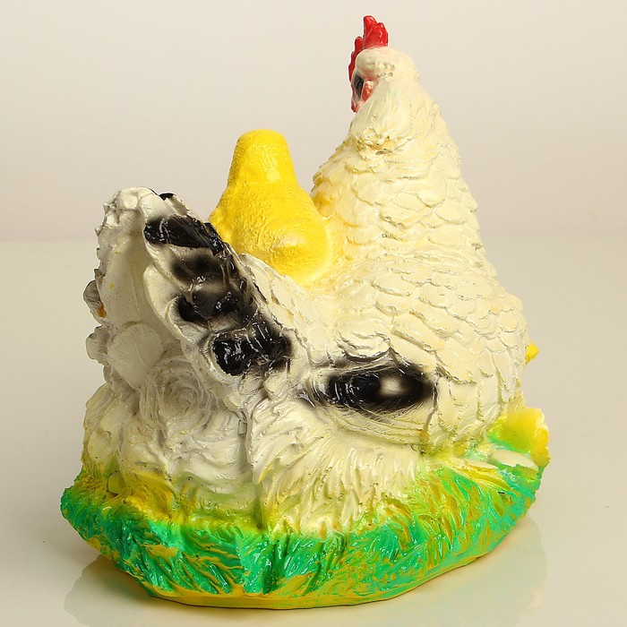 Садовая фигура "Курица наседка с цыплятами" белая 30х25см