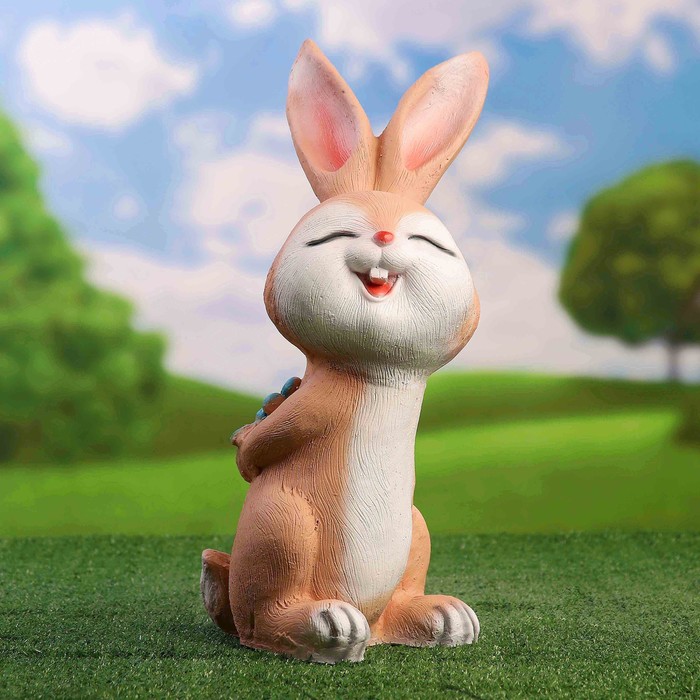 Садовая фигура "Заяц с цветком" 22х45см бежевый