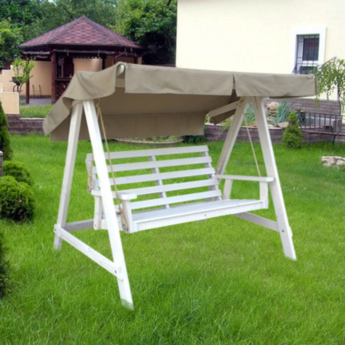 Садовые качели из дерева 2-х местные "HERITAGE" без текстильного комплекта (сосна) белые