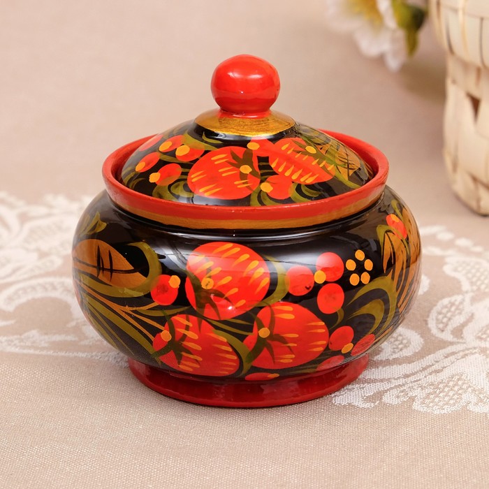 От качества посуды зависит не только вкус еды, но и здоровье человека. Сахарница «Пузырь», 8х6 см, 150 мл, хохлома — товар, соответствующий российским стандартам качества. Любой хозяйке будет приятно держать его в руках. С нашей посудой и кухонной утварью приготовление еды и сервировка стола превратятся в настоящий праздник.