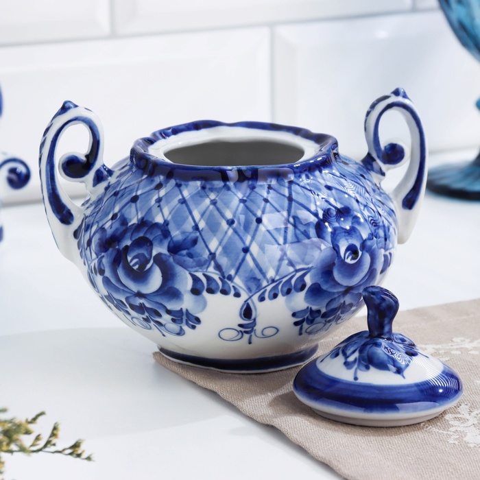 Сахарница с ручками «Алевтина», гжель, кобальт