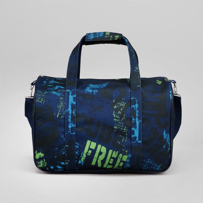 Саквояж "Буквы", отдел на молнии, длинный ремень, цвет синий