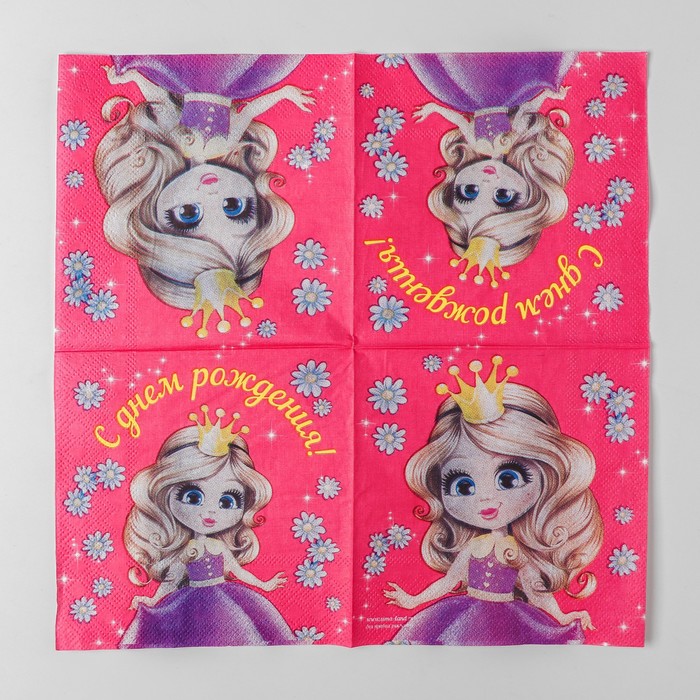 Салфетка 25*25см "С днем рождения" принцесса (набор 20 шт)