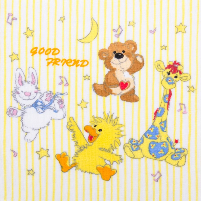 Салфетка махровая "Хорошие друзья" (желтая), 25х25 см, хл100, 340 г/м