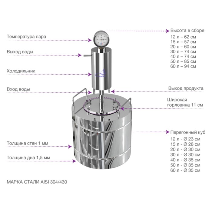 | Сухопарник или дефлегматор | Нет |