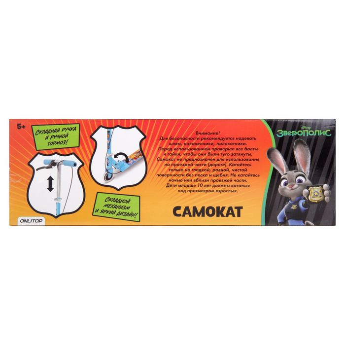 Самокат "Зверополис" с тормозом, три колеса PVC d=90 мм