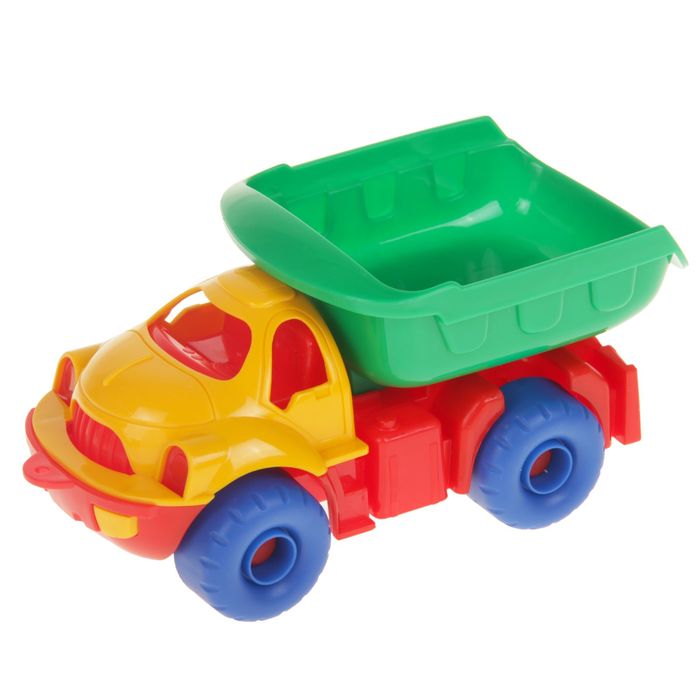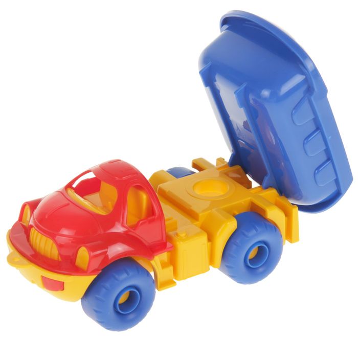 Самосвал ТМ «Нордпласт» порадует маленьких любителей спецтехники. Он оснащён вместительным кузовом, в который можно засыпать песок или камушки. Колёса выдувные — они не поцарапают паркет или ламинат в квартире.