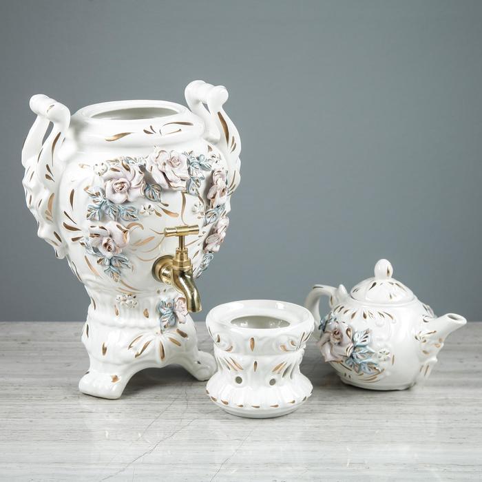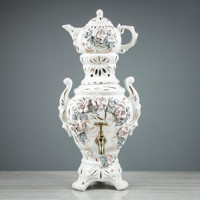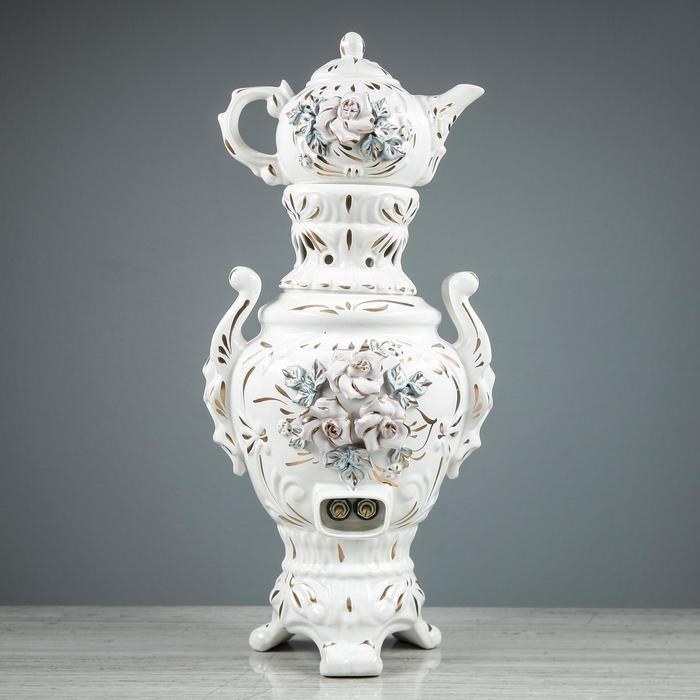 Самовар электрический с заварником "Царский" лепка, белый, светло-розовая роза, 4 л, 0,5 л провод не прилагается