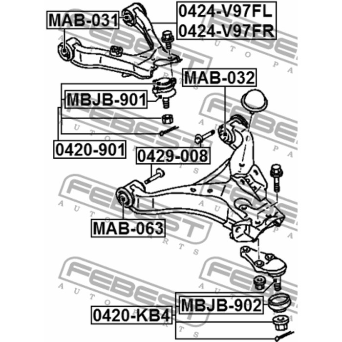 Сайлентблок переднего нижнего рычага febest mab-063