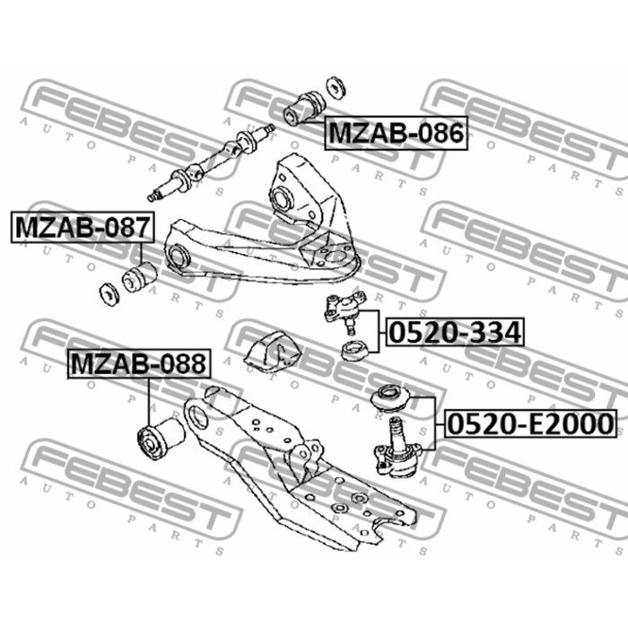 Сайлентблок переднего верхнего рычага febest mzab-087