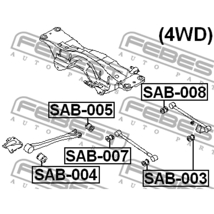 Сайлентблок заднего поперечного рычага febest sab-008