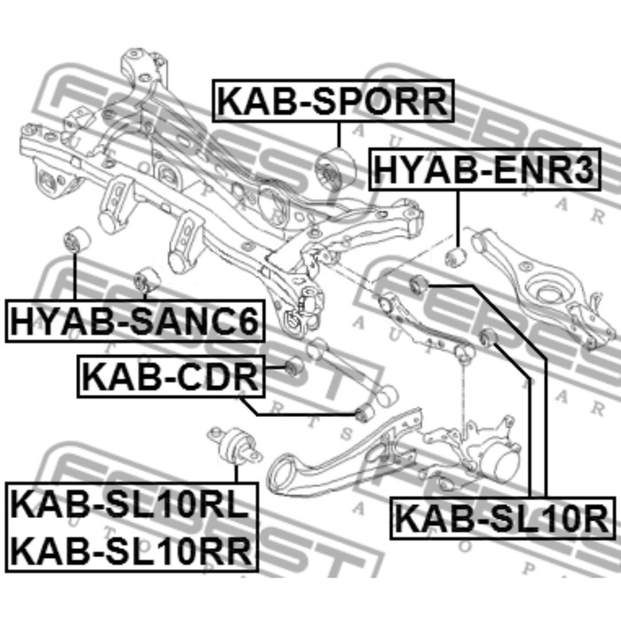 Сайлентблок заднего продольного рычага левый febest kab-sl10rl