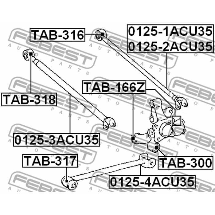 Сайлентблок задней поперечной тяги febest tab-318