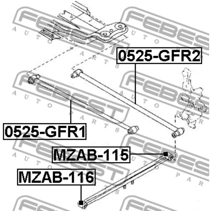 Сайлентблок задней продольной тяги febest mzab-115