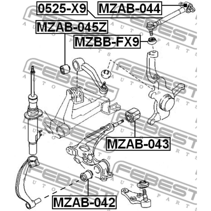 Сайлентблок задний переднего рычага febest mzab-043