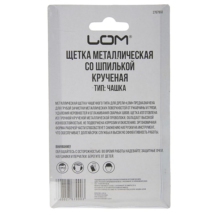 Щетка металлическая LOM для дрели со шпилькой, крученая "чашка", 75 мм