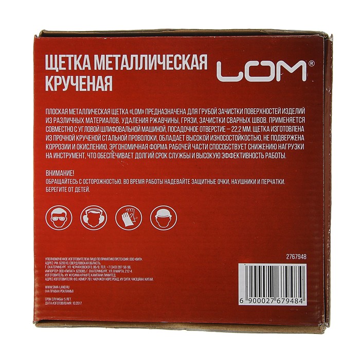 Щетка металлическая LOM для УШМ крученая "плоская", 22,2 мм, 175 мм
