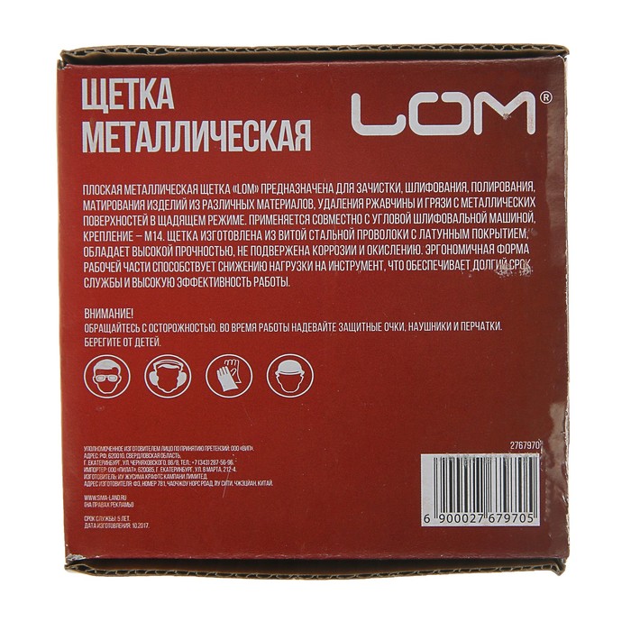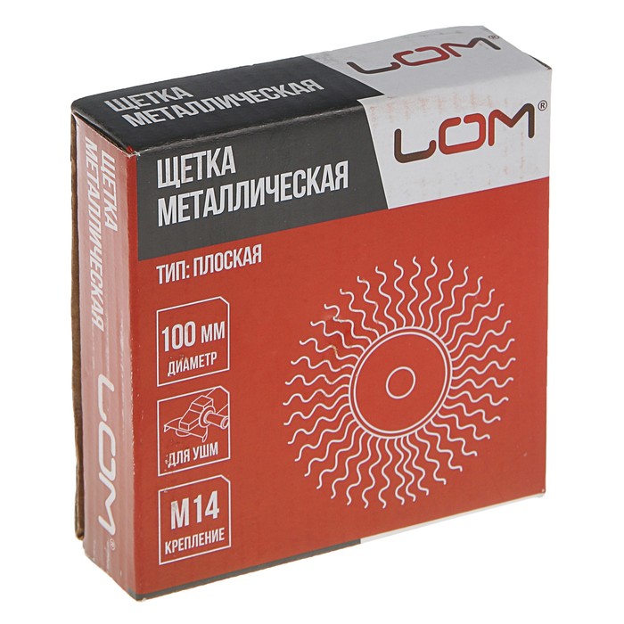 Щетка металлическая LOM для УШМ "плоская", М14, 100 мм