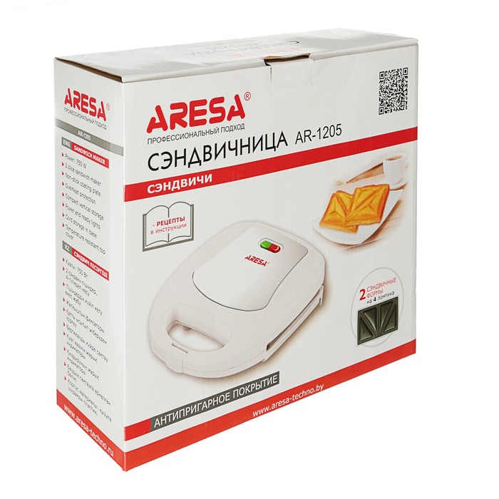 Сэндвичница ARESA AR-1205, 750 Вт, 2 формы, белая