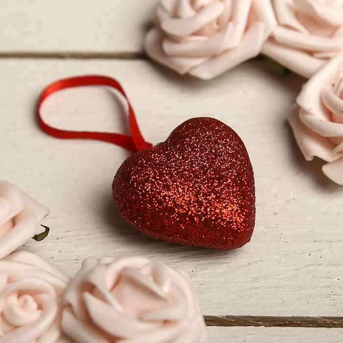 Сердце на подвеске с блёстками (набор 24 шт), цвет красный станет отличным сюрпризом для любимого. Такое сердечко вы можете использовать в качестве отдельного подарка или же дополнить им основной презент.