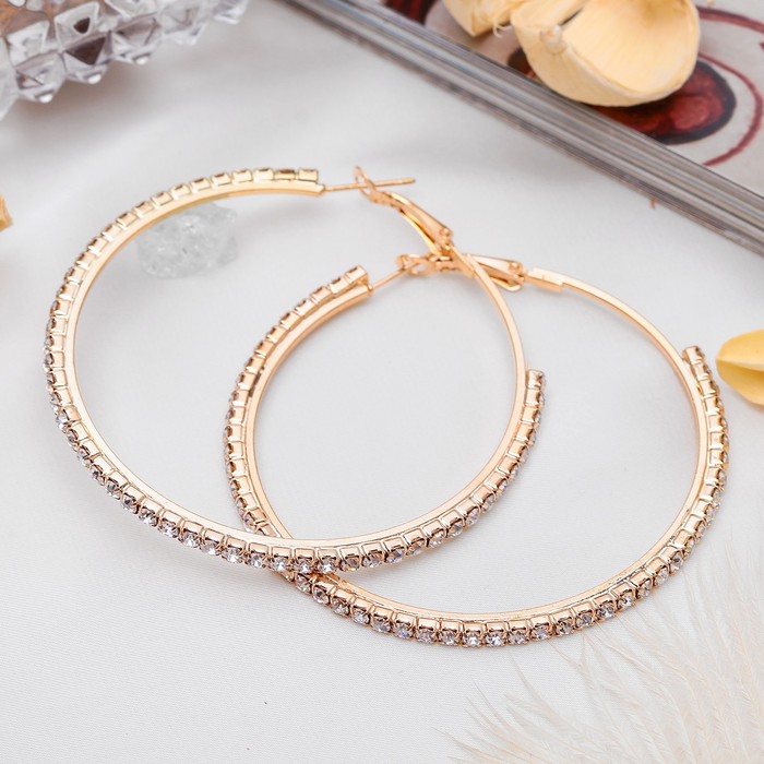 Серьги-кольца Princess дорожка, цвет белый в золоте, d=6 см