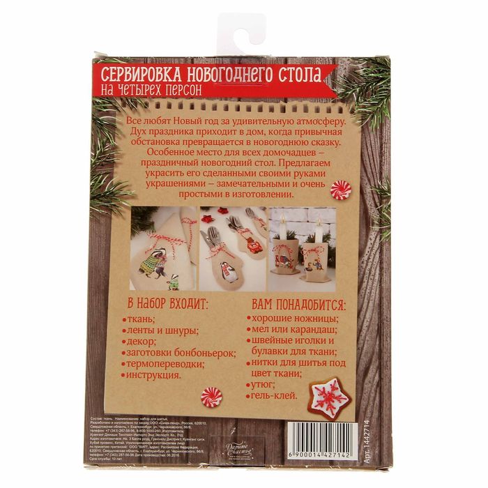Сервировка новогоднего стола «Снежные истории», набор для шитья, 16,5 × 22,5 × 3,5 см