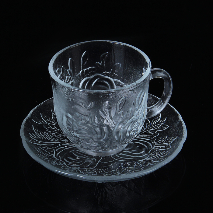 Набор посуды из рельефного стекла пригоден для сервировки праздничного стола и повседневного использования.