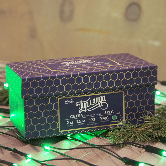 СЕТЬ, уличная УМС Ш:2м, В:1,5м, Н.Т. 3W LED-192-220V, ЗЕЛЕНЫЙ