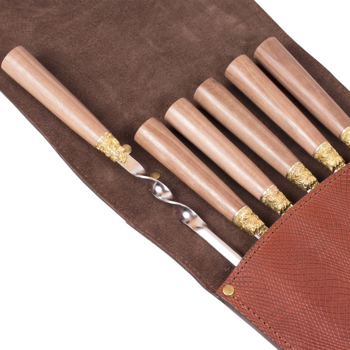Шампуры подарочные 6 шт. в колчане из натуральной кожи
