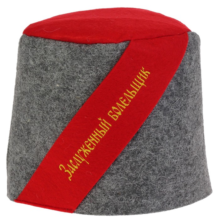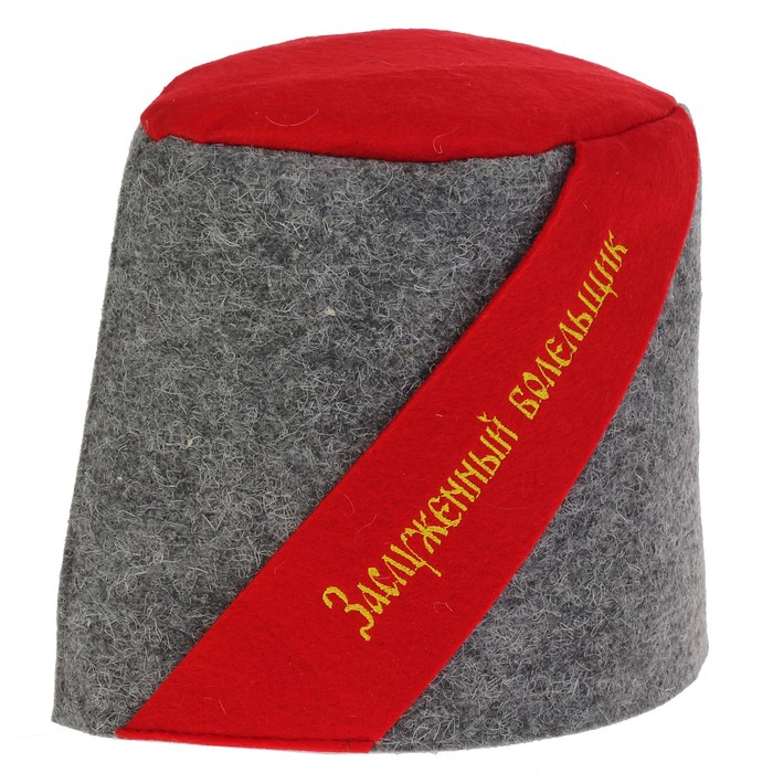 Шапка банная с вышивкой "Папаха.Заслуженный болельщик", войлок, серая