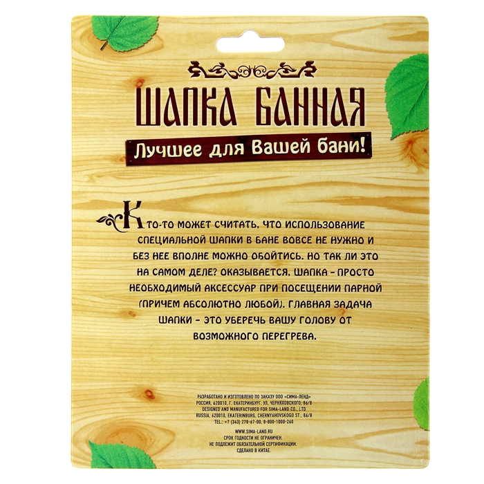 Если вы хотите преподнести оригинальный и весёлый подарок любителю парной, то наши банные шапки — настоящая находка для вас. Благодаря уникальному дизайну и высокому качеству материалов эти аксессуары порадуют получателя и прослужат ему долгое время.качеству материалов эти аксессуары порадуют получателя и прослужат ему долгое время.