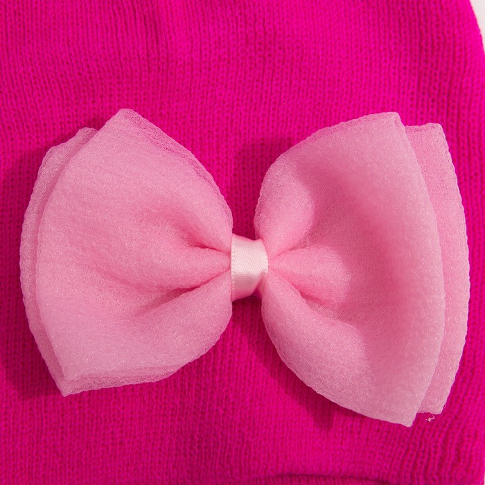 Шапка детская с бантом Collorista, р-р 50-52, фуксия, акрил 100%, 20Х16,5 см