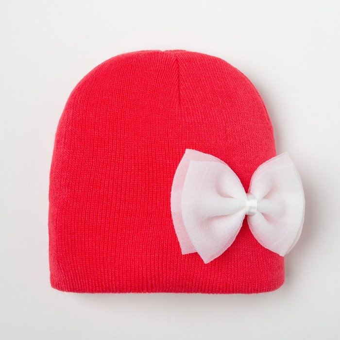 Шапка детская с бантом Collorista, р-р 50-52, коралл, акрил 100%, 20Х16,5 см