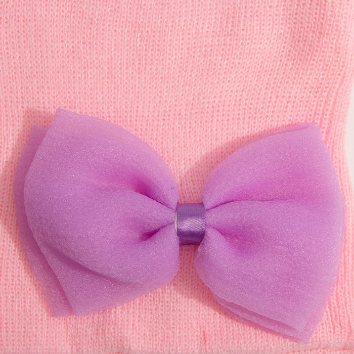 Шапка детская с бантом Collorista, р-р 50-52, св.розовый, акрил 100%, 20Х16,5 см