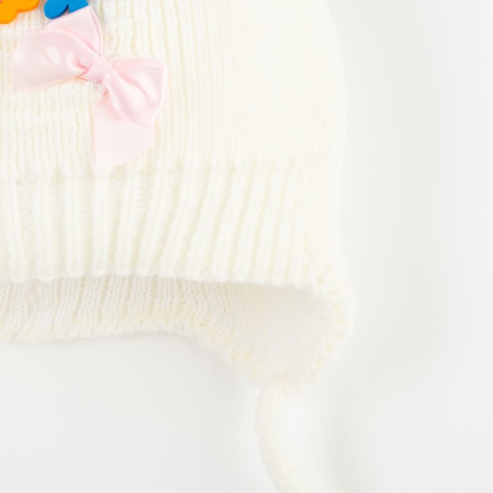 Шапка для девочки "Фиалочки", возраст 0-3 мес. (38-40), цвет молочный 6689-7008пш_М