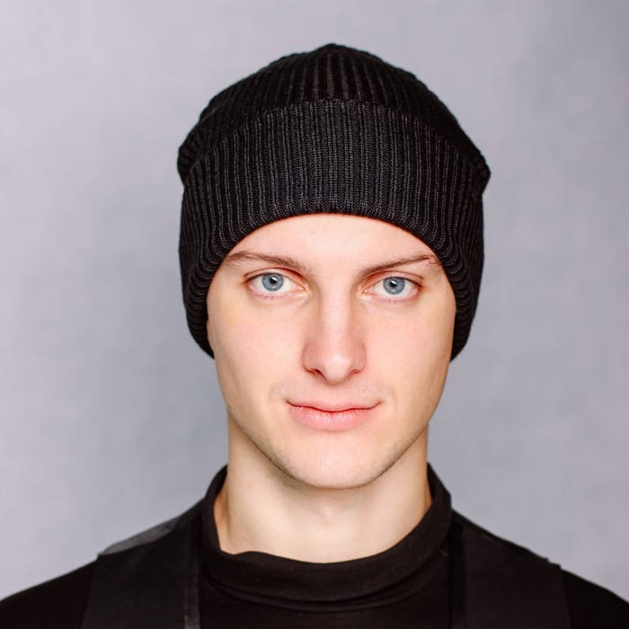 Шапка мужская "НЕОН М" демисезонная 816401 цвет чёрный, р-р 56-58