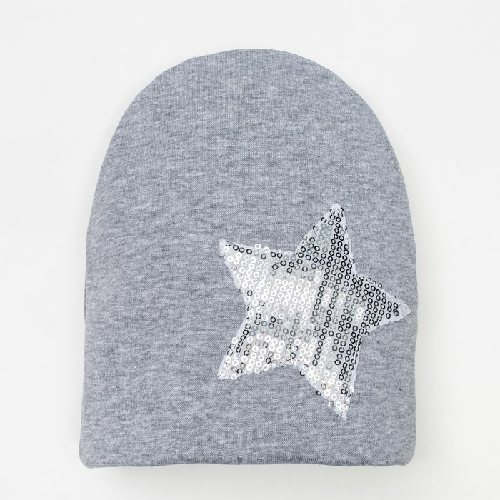 Шапка со звездой из пайеток, серый меланж, размер 46/50 см