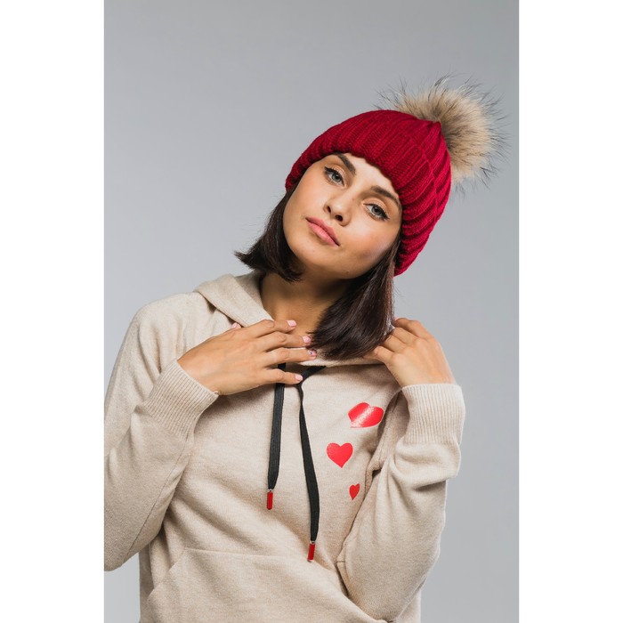 Шапка женская с помпоном "Амалия", размер 54-56, цвет бордовый